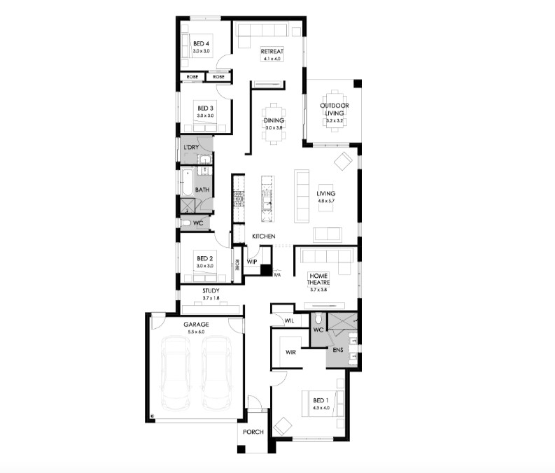 A cosy retreat at the rear of the home sits apart from the living and dining space, and the outdoor entertaining area – it’s purely for quiet time. Or you could retreat to the home office and theatre, towards the front of the home.